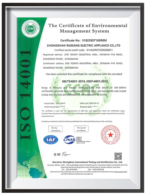 Ruikang provides manufacturers with high-performance and high-efficiency smart home systems and comfort solutions, and has long-term suppliers, material production equipment and excellent engineering and technical personnel, thus reducing costs, increasing output and simplifying operations, and providing customers with higher-quality home smart electrical products for their next project plan:including top-grade automatic voltage regulators,smart locks, mechanical lock,air humidifiers, and fans.